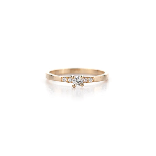 Verlovingsring in geelgoud , diamant 0.10ct en 4x 0,01ct