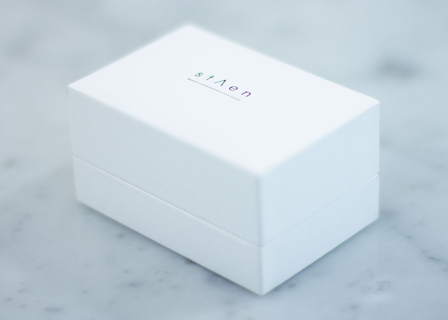 Ja hoor! Een mooi, strak, wit doosje met de ringen naast elkaar.